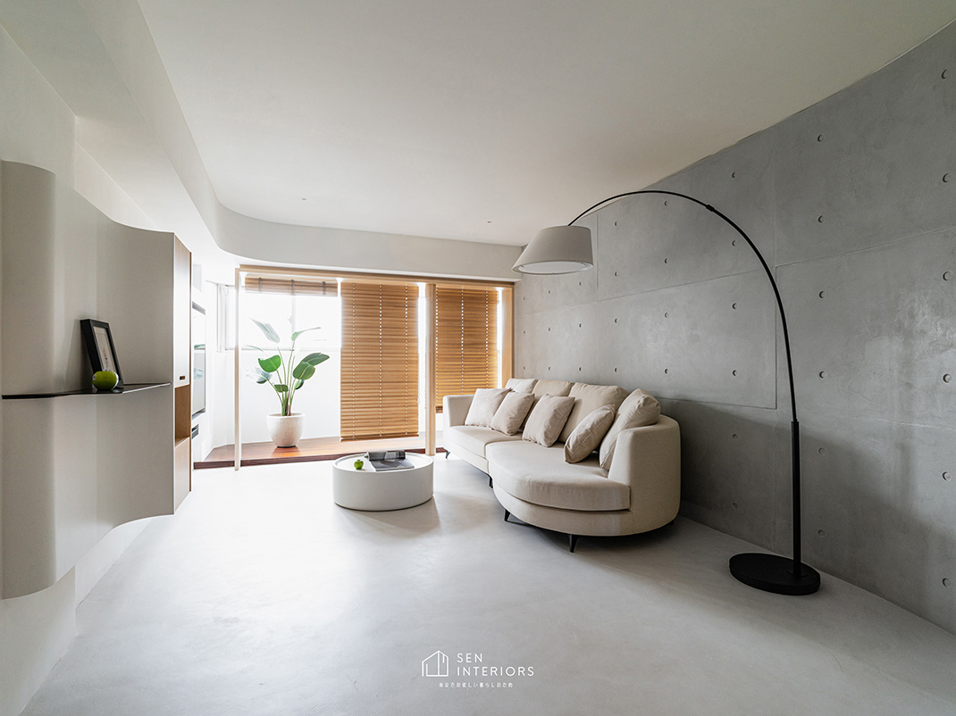 本案以極簡主義為骨幹,試圖在現代都市住宅中營造一種「靜謐的流動感」。設計核心圍繞著空間邊界的模糊與重塑,將原本生硬的建築線條轉化為溫潤的曲面,讓居住者在進門的瞬間便能卸下外界的喧囂。